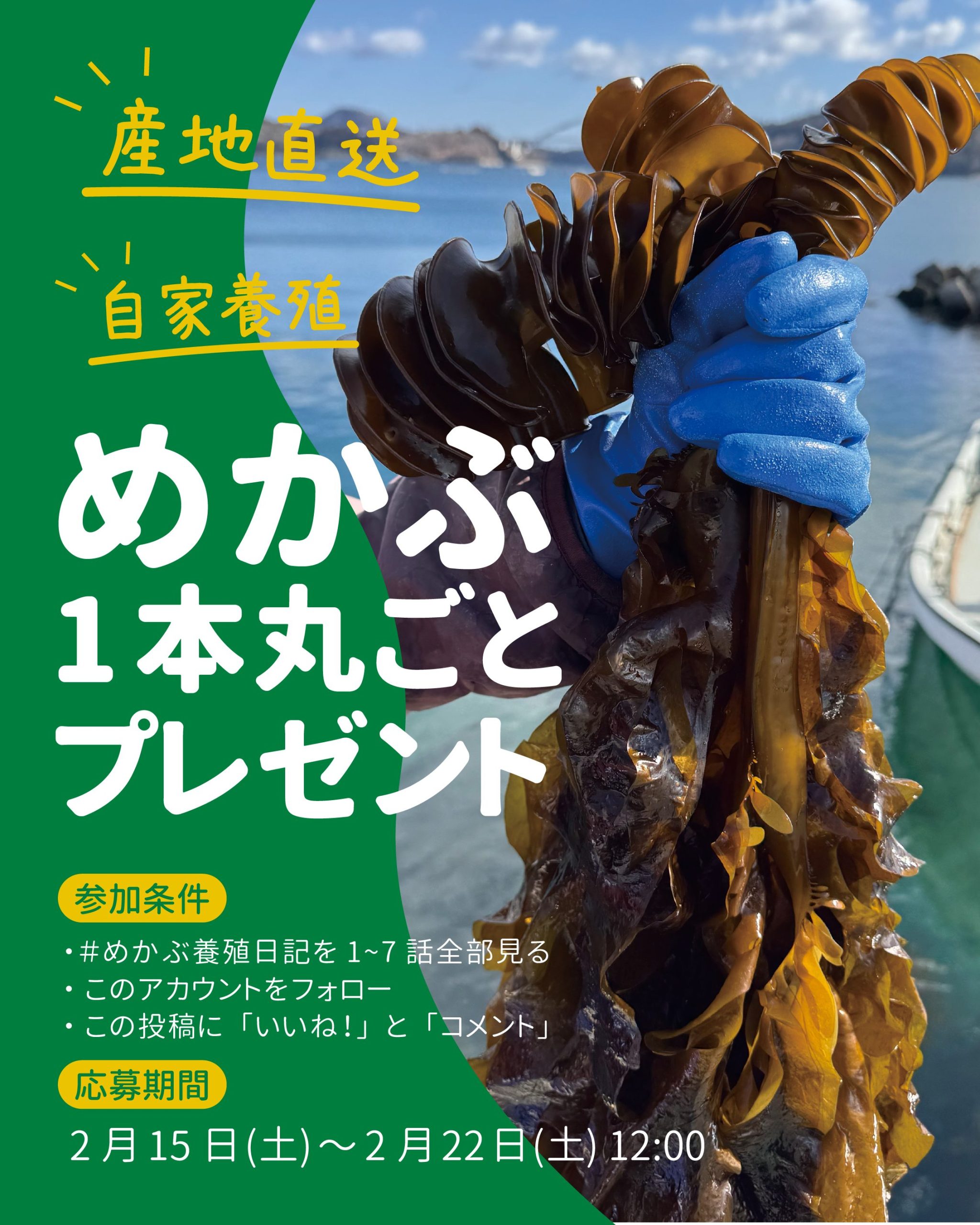 収穫を記念してワカメ・めかぶが一本丸ごと当たるプレゼントキャンペーンを実施します!